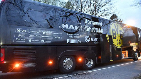 Xe buýt của Dortmund bị vỡ kính vì 3 thiết bị gây nổ