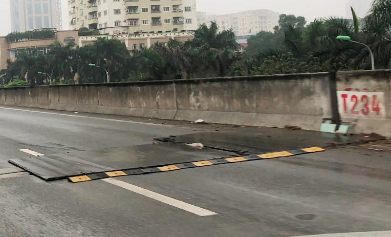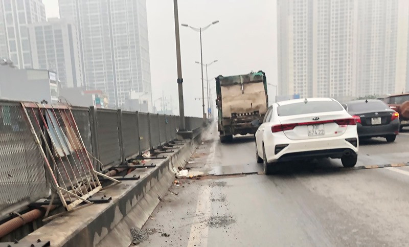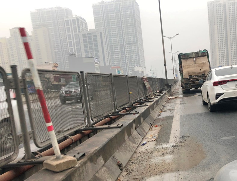Ngoài dùng bản thép che đậy khiến mặt đường gồ ghề, tại một số công trường khi đến sáng đơn vị thi công còn để nguyên hàng rào, biển báo trên bờ dải phân cách, khi phương tiện đi qua tạo sự rung lắc, nhiều tấm hàng rào, biển báo đã rơi xuống đường, gây nguy hiểm cho phương tiện qua lại.