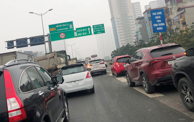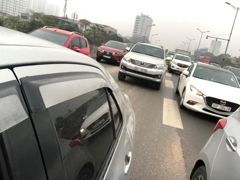 Ùn tắc tại đường trên cao đoạn qua các công trường thi công khe co giãn trong sáng 16 và 17/3.