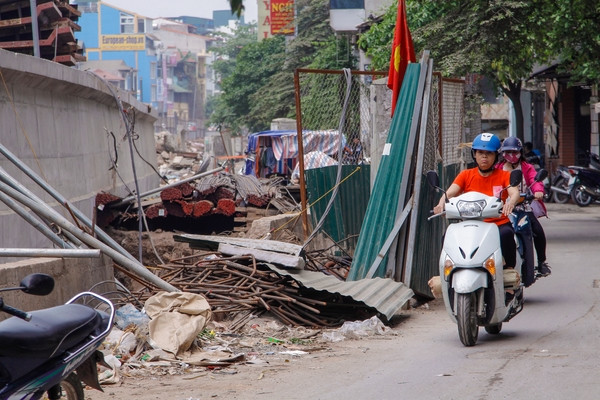Vật liệu xây dựng ngổn ngang và không có rào chắn công trình.