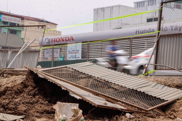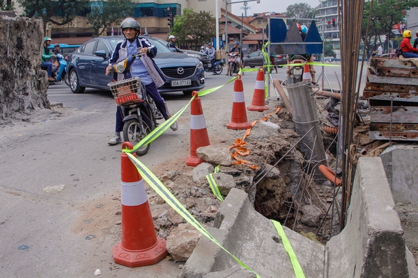 Đào hố nằm giữa đường, việc rào công trình sơ sài gây nguy hiểm cho người đi đường
