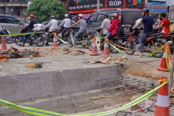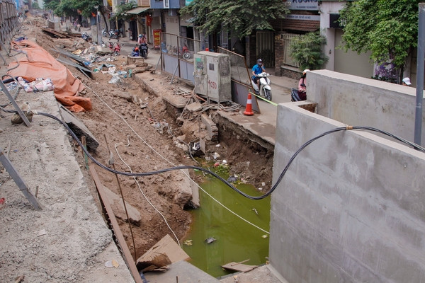 Tương tự với việc đào hạ đê Hữu Hồng (đoạn từ khách sạn Thắng Lợi đến cửa khẩu An Dương) được thực hiện từ 15/11, thời gian dự kiến trong vòng 5 tháng. Đến nay gần hết 5 tháng nhưng công trình vẫn ngổn ngang, vắng bóng công nhân.