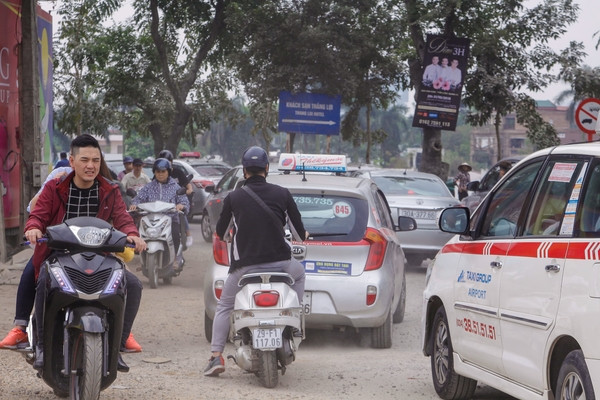 Các phương tiện rẽ vào đường An Dương di chuyển khó khăn.