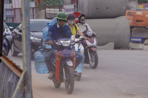 Công trình khiến đường bụi mù mịt, gây ô nhiễm môi trường ảnh hưởng trực tiếp đến người đi đường.
