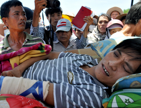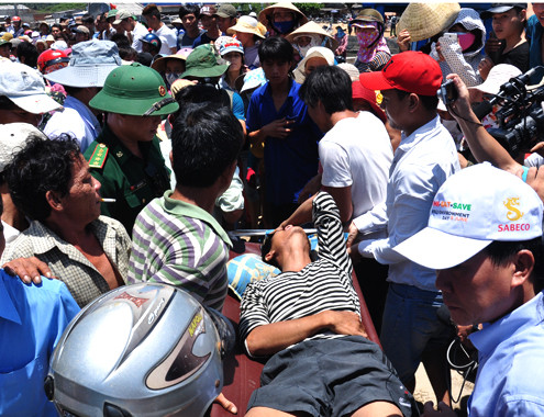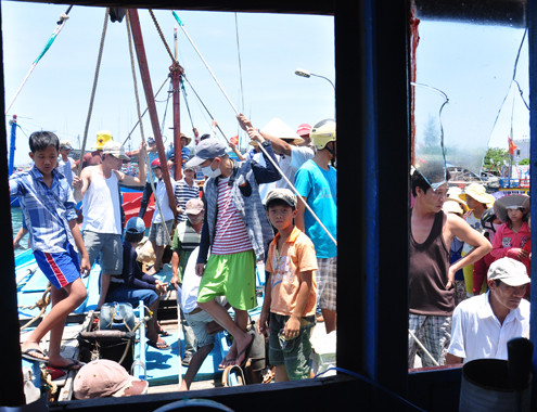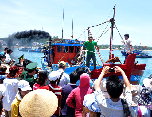 Trưa nay, cơ quan chức năng Quảng Ngãi cùng hàng trăm người dân ở các làng chài Bình Châu, huyện Bình Sơn và Tịnh Kỳ, huyện Sơn Tịnh đã chờ đón chuyến tàu QNg90205-TS chở hai ngư dân bị lực lượng kiểm ngư Trung Quốc bất ngờ tấn công, đánh trọng thương ở gần đảo Phú Lâm thuộc vùng biển Hoàng Sa.