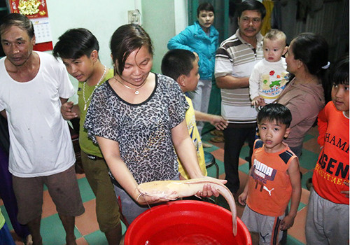 Một số người muốn mua lại con cá trê này nhân dịp đầu năm mới, nhưng anh Hùng không bán. "Gia đình tôi để con cá ở nhà cho mọi người xem vài ngày rồi sẽ thả về lại sông", vợ anh Hùng nói.