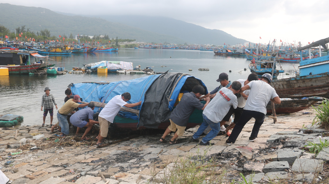 Theo dự báo, bão số 9 là cơn bão rất mạnh, di chuyển nhanh, phạm vi ảnh hưởng rất rộng, sức tàn phá lớn nên người dân Đà Nẵng chủ động giúp nhau di chuyển tàu thuyền, ghe, thúng lên bờ để tránh thiệt hại.