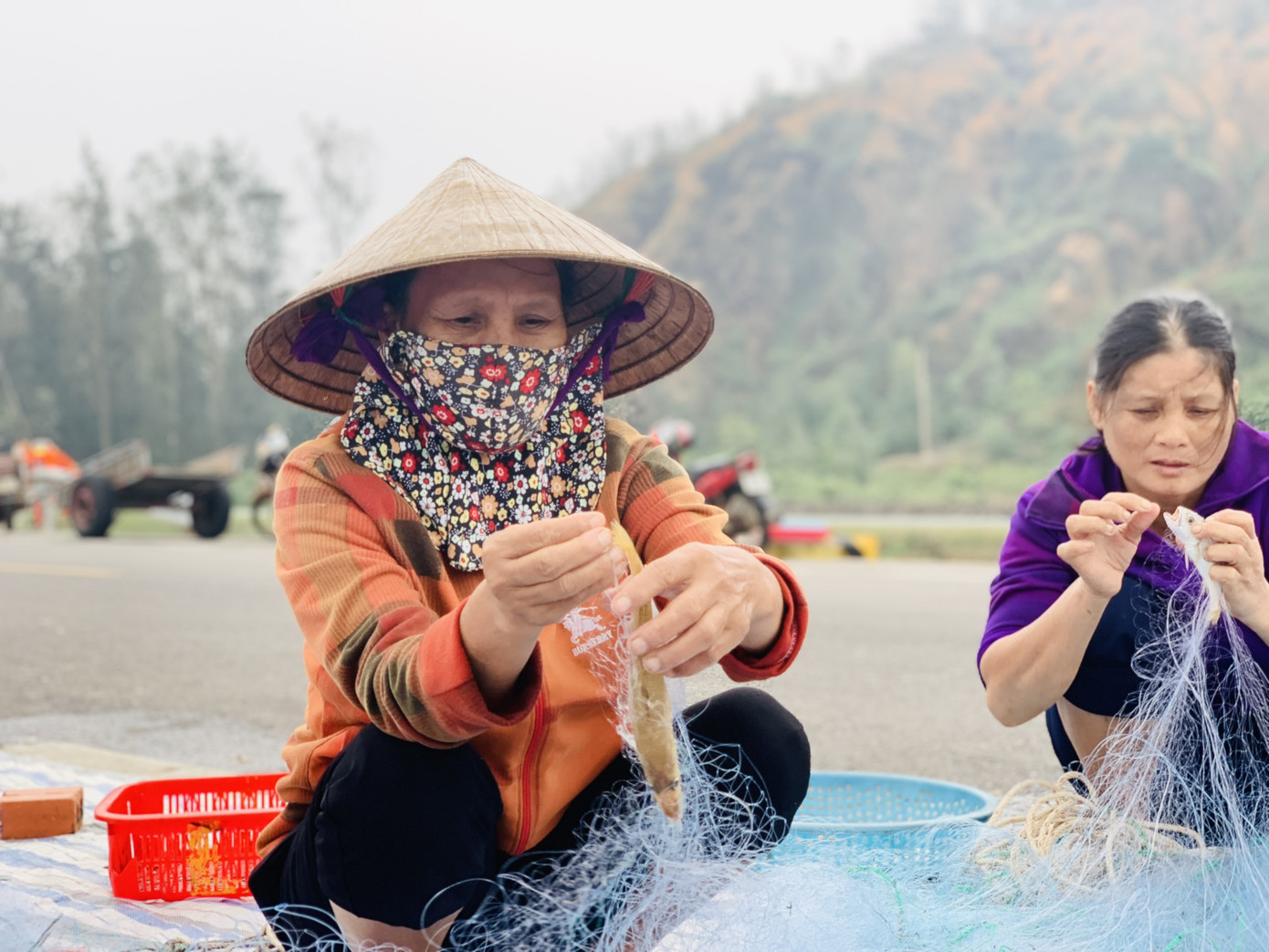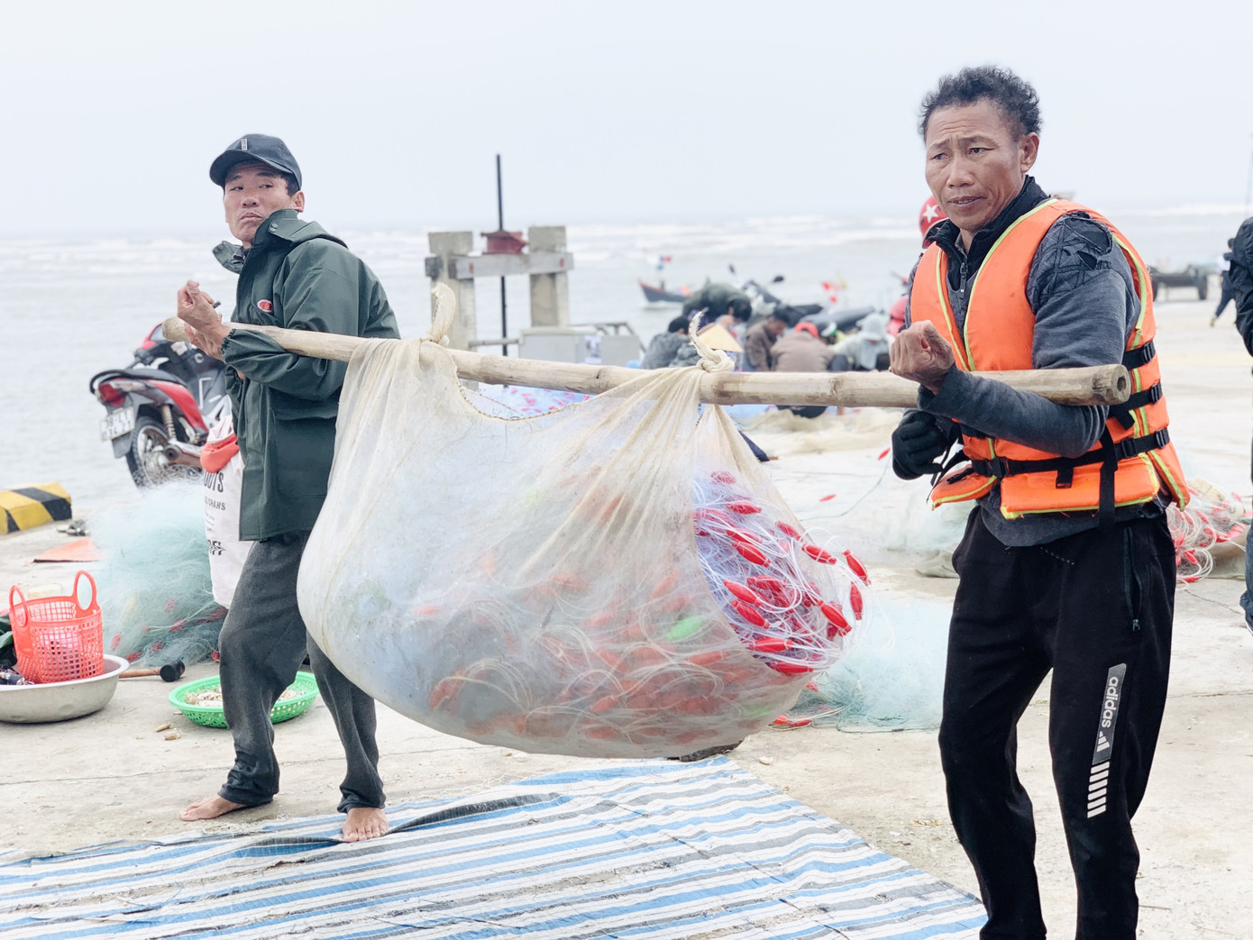 Tại vùng bãi ngang xã Thịnh Lộc, huyện Lộc Hà (Hà Tĩnh), ngư dân khi cập bến sẽ tập trung gỡ lưới, thu hải sản sau nhiều giờ đánh bắt ngoài khơi. Số hải sản họ đánh bắt sau khi lên bờ sẽ gỡ lưới, chia ra và bán ngay tại đê biển.