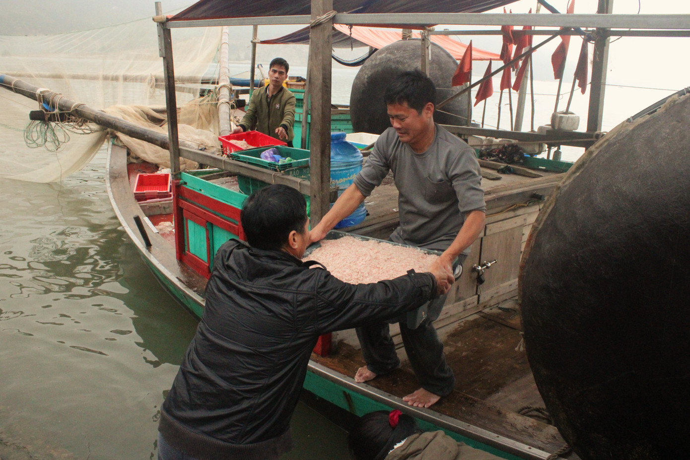 Số lượng ruốc được đưa lên bờ để cân và bán cho thương lái.