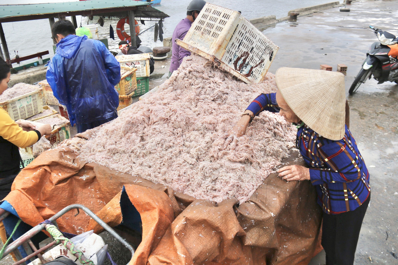 Ruốc biển được vận chuyển và đưa lên bờ