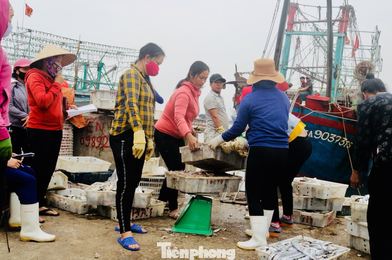 Tàu cập bến, những thùng cá bạc má, cá hố... được vận chuyển lên bờ.
