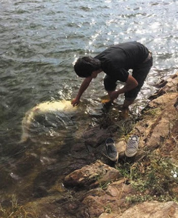 "Có người đến gặp tôi hỏi mua con cá để làm thịt nhưng tôi không muốn giết nó. Con cá phải rất khó khăn mới lớn được như thế này", anh Cao chia sẻ. Cuối cùng, anh quyết định thả con cá nheo xuống nước.