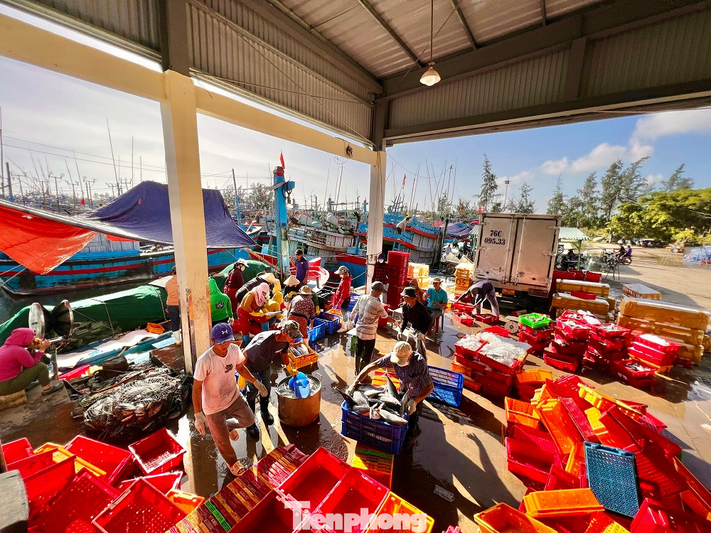 TPO - Sau gần một tháng bám biển xuyên Tết trên ngư trường Hoàng Sa, Trường Sa (Việt Nam), hàng loạt tàu cá của ngư dân Quảng Ngãi nối đuôi nhau cập cảng, mang về “lộc biển” với những khoang tàu đầy ắp tôm cá…