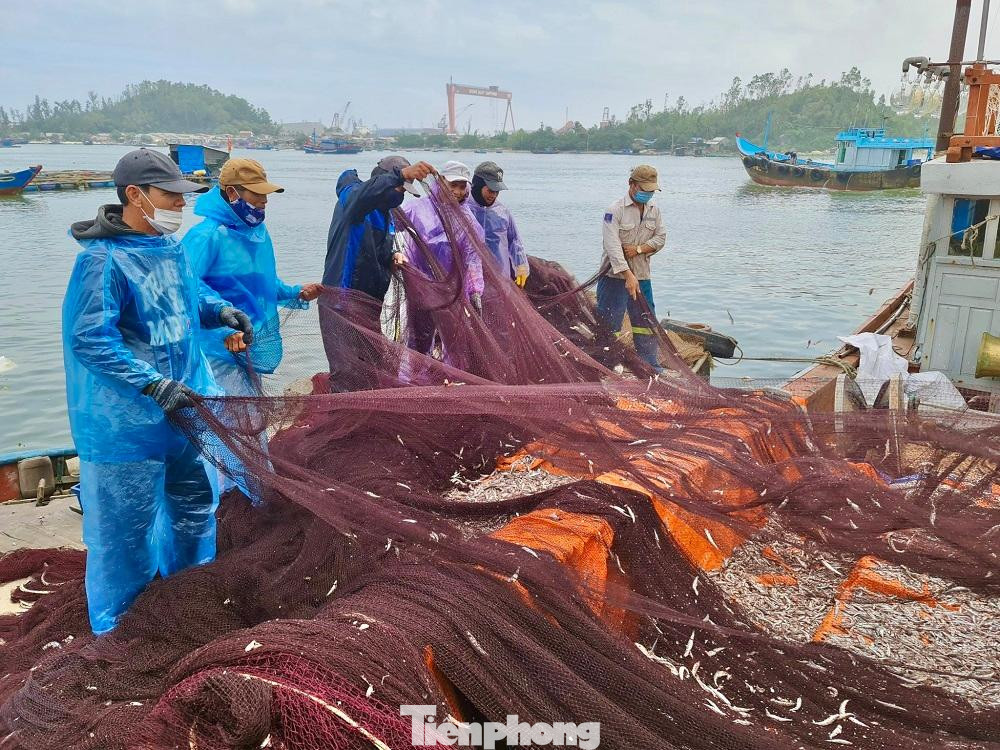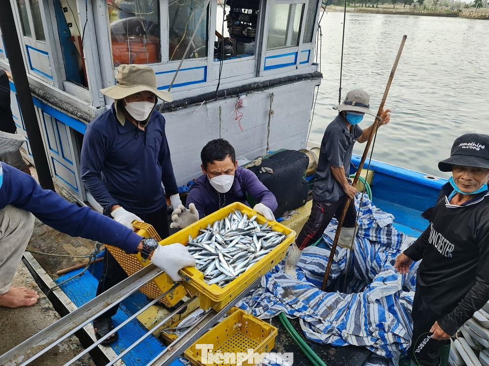 | Ngoài cá nục điếu, ngư dân Quảng Ngãi còn trúng cá cơm. Hiện giá cá cơm bán tại bến trung bình 15.000 đồng/kg, cá nục điếu 20.000 đồng/kg. Mỗi chuyến tàu sau một đêm đánh bắt thu về khoảng 50-60 triệu đồng/tàu (chưa trừ chi phí), ngư dân thu 5-6 triệu đồng/người. |
