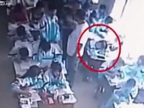 Cảnh trong đoạn video cho thấy khi thầy giáo đang trừng phạt một học sinh nam thì vô tình nhìn thấy một học sinh nữ nằm gục mặt xuống bàn ở bên cạnh. Thấy vậy, ông kéo cổ áo lôi cô từ bàn ra ngoài hành lang, đá một phát vào người trước khi tống cô bé vào bức tường đối diện. Sau đó, nữ sinh này ôm bụng nhăn nhó, ngồi sụp xuống đất và ngã ra ngất xỉu trên hành lang.