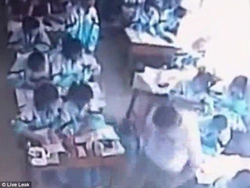 Cũng trong đoạn video, trước đó vài phút, giáo viên này đã tỏ ra rất tức giận với 1 học sinh ở giữa lớp và đá ghế ngồi của học sinh này.