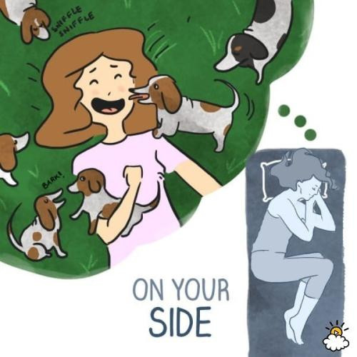 Những người ngủ nghiêng bên phải thường chỉ mơ thấy cầu vồng và chó con. Những giấc mơ của nhóm này khá tích cực và vui vẻ, ít ác mộng so với người nằm nghiêng bên trái. Người nằm nghiêng bên phải cũng ngủ ngon và sâu hơn, tuy nhiên ngủ nghiêng bên trái cũng có những mặc tốt nhất định.