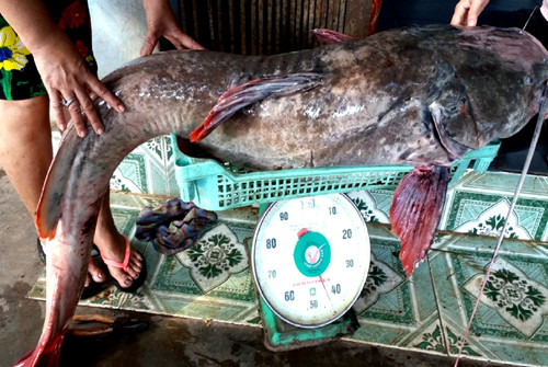 Gần 20 năm trong nghề, anh cho biết chỉ mới một lần câu được con cá nặng nhất trên 40 kg, cách nay hai năm. Còn con khoảng 25 kg thì thường xuyên. Mỗi lần bắt được cá "khổng lồ", anh phải nhờ đến chú ruột, mất hơn 2 giờ mới đưa được nó lên bờ. "Nhớ lần bắt được cá nặng trên 40 kg, con cá vùng vẫy đã làm thuyền lật úp. May mắn, tôi và người chú biết bơi nên không bị đuối nước", anh nhớ lại.