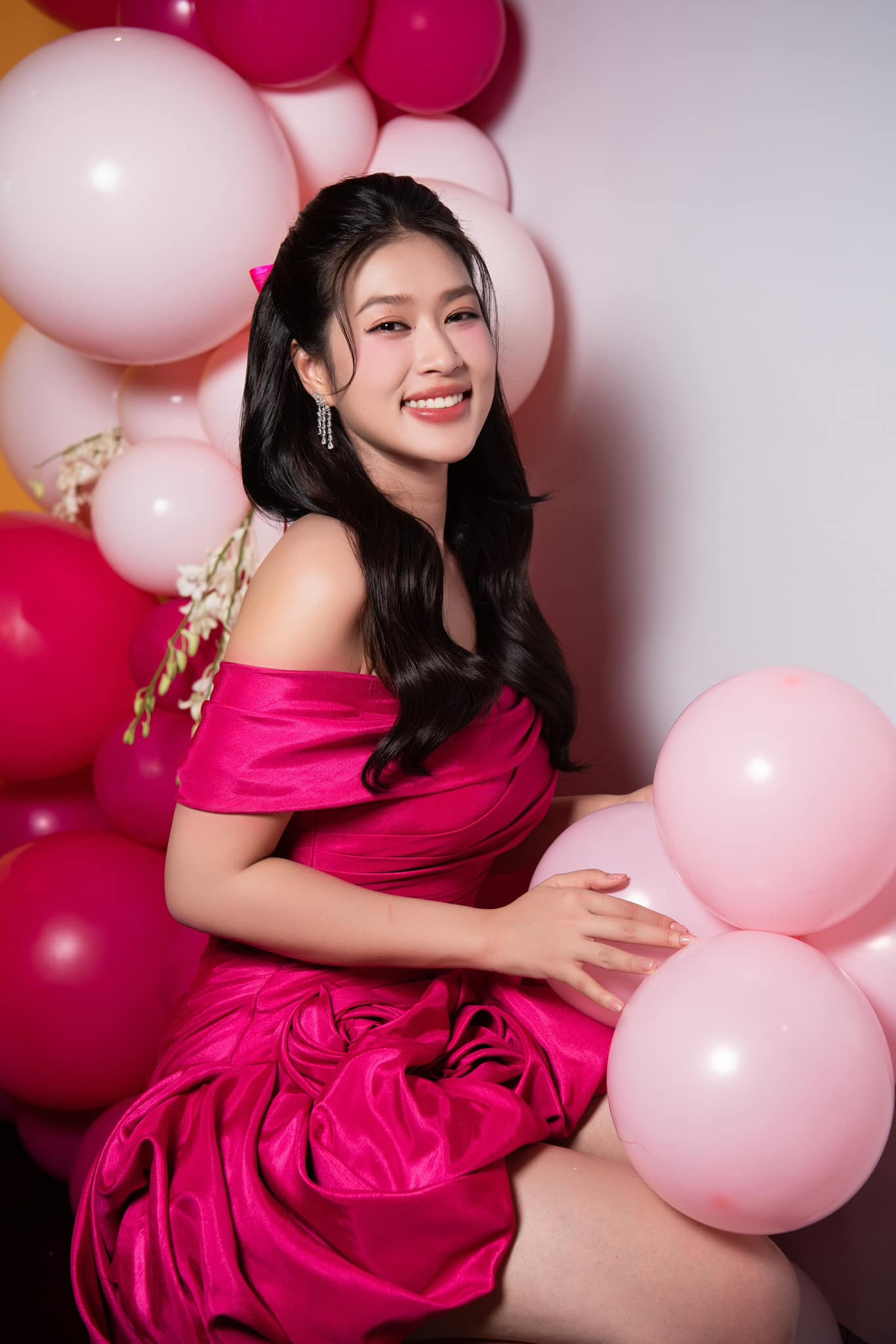 Đoàn Thiên Ân diện mẫu đầm phồng cầu kỳ tông màu hồng trong tiệc sinh nhật tuổi 24.