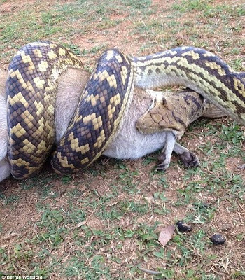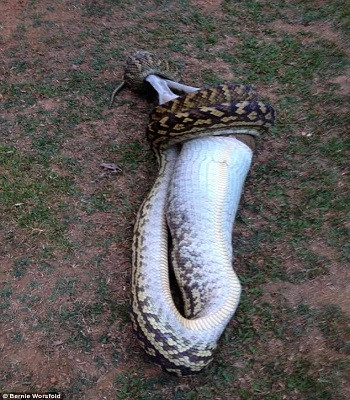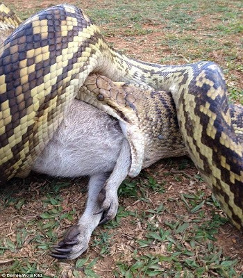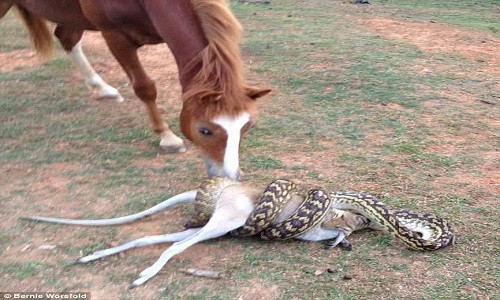 Bernie Worsford bắt gặp một con trăn đang bắt mồi ở thị trấn Kuranda phía bắc bang Queensland, Australia và nhanh chóng lấy máy ảnh ghi lại cảnh trăn chậm rãi nuốt chửng con chuột túi Wallaby trong khi một con ngựa ở gần đó đứng nhìn với vẻ sững sờ. Loạt ảnh được 7 News chia sẻ trên Facebook, thu hút hơn 20.000 bình luận và 22.000 lượt chia sẻ.