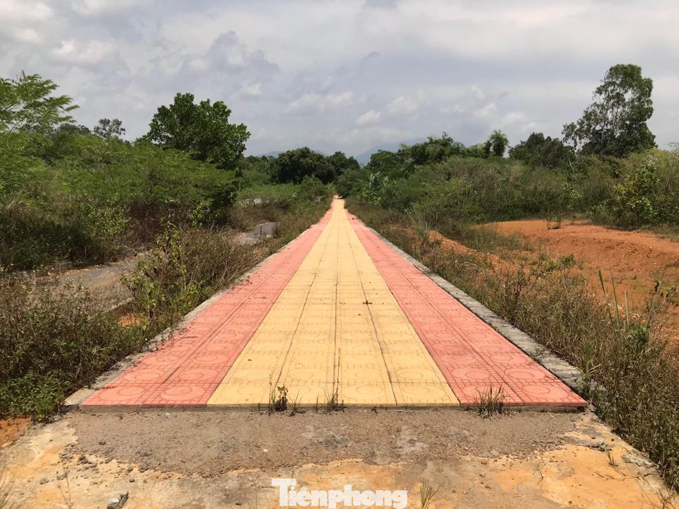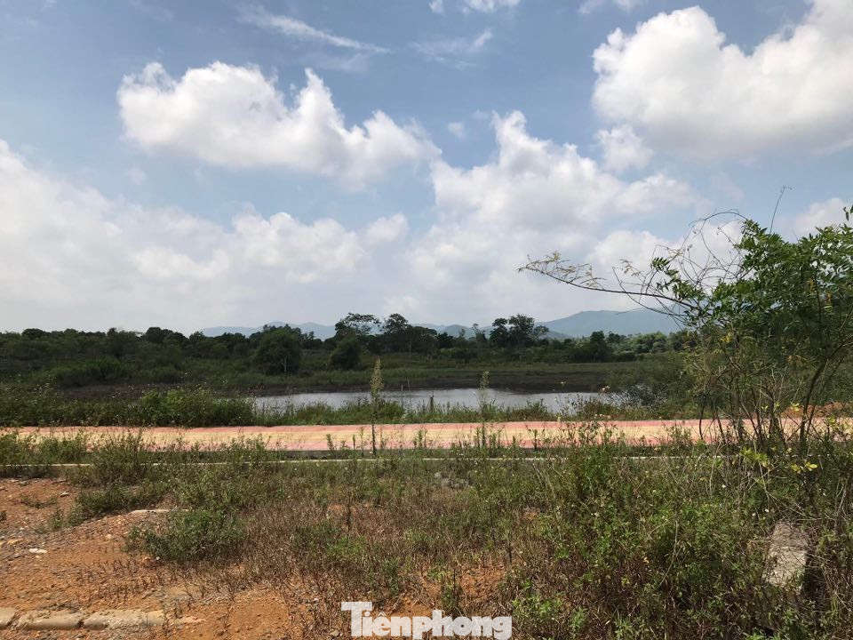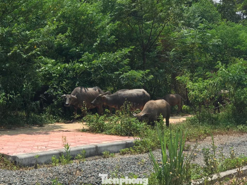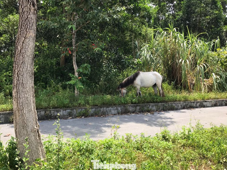 Mặc dù dự án đã được triển khai hàng chục năm qua nhưng tại đây nhiều nơi cỏ dại mọc cao lút đầu người. Đường nội bộ trong khu quy hoạch xây đại học được đầu tư khá đẹp và đồng bộ, rộng vài chục mét. Trong ảnh, một chú ngựa được cột vào cây trồng ven đường dẫn vào Khu dự án