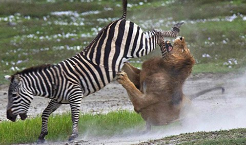 Trong trận chiến sống còn giữa ngựa vằn và sư tử, ngựa vằn là con vật yếu thế hơn và thường chịu cái kết đau đớn. Nhưng cũng có một vài lần, ngựa vằn vùng lên, giáng những đòn chí tử khiến “chúa tể rừng xanh” nhận thất bại.