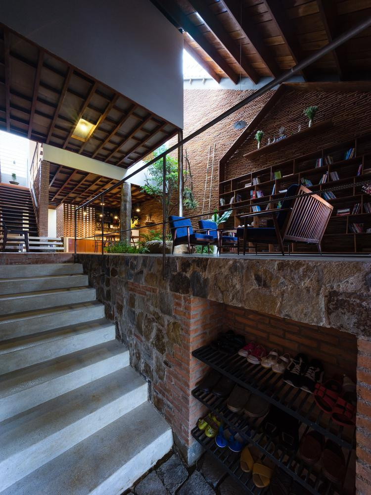 | Để tạo sự thú vị cho ngôi nhà, các bức tường gạch trần được giữ nguyên. |