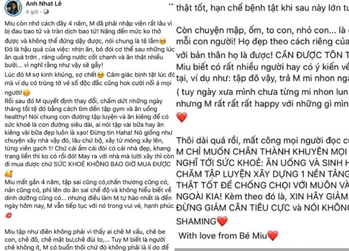 Mặt khác, Miu Lê cho biết mình cũng từng trải qua giai đoạn body-shaming với những nhận xét như "đùi to, mặt bự" nên khiến nhiều khán giả nghĩ rằng cô tập gym và tích cực giảm cân như vậy để khắc phục khuyết điểm cơ thể. Nhưng sự thật cô giảm cân và tập gym không vì những lời chê bai đó mà vì cô cảm thấy vui vẻ và hạnh phúc hơn, yêu bản thân mình hơn thôi, với cô thì việc mập - ốm là quyết định của mỗi người, mỗi người đều có vẻ đẹp riêng của mình và cần được người khác tôn trọng.
