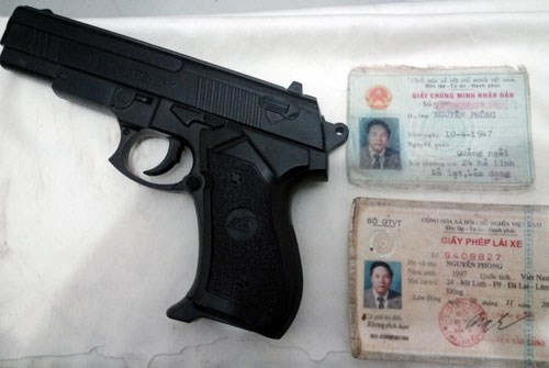 Theo đơn tố cáo của bà Thùy, Công an H.Đức Trọng đến khám xét phòng trọ ông Phòng đang thuê để tìm khẩu súng. Ông Phòng mở tủ lấy khẩu súng ngắn được bao bọc cẩn thận trong mảnh vải giao cho công an, nhưng đó là súng giả, bằng nhựa!