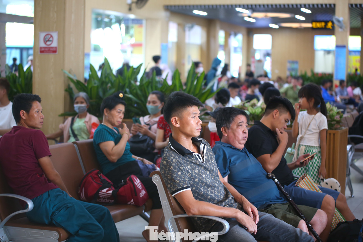 | Tại khu vực sảnh chờ bến xe Mỹ Đình có rất đông hành khách ngồi chờ xe xuất bến. Mặc dù lượng khách tăng đột biến so với ngày thường nhưng việc mua vé, chọn xe không gặp khó khăn. |