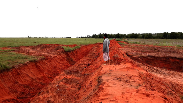 “Vùng đất như cái phễu, nước trên đồi chảy hết xuống đất rẫy của dân. Xí nghiệp lại khai thác hết rừng, ddafo luôn gốc nên không giữ nước được. Họ còn khai mương cho nước chảy thẳng xuống đất dân”, anh Vũ nói.