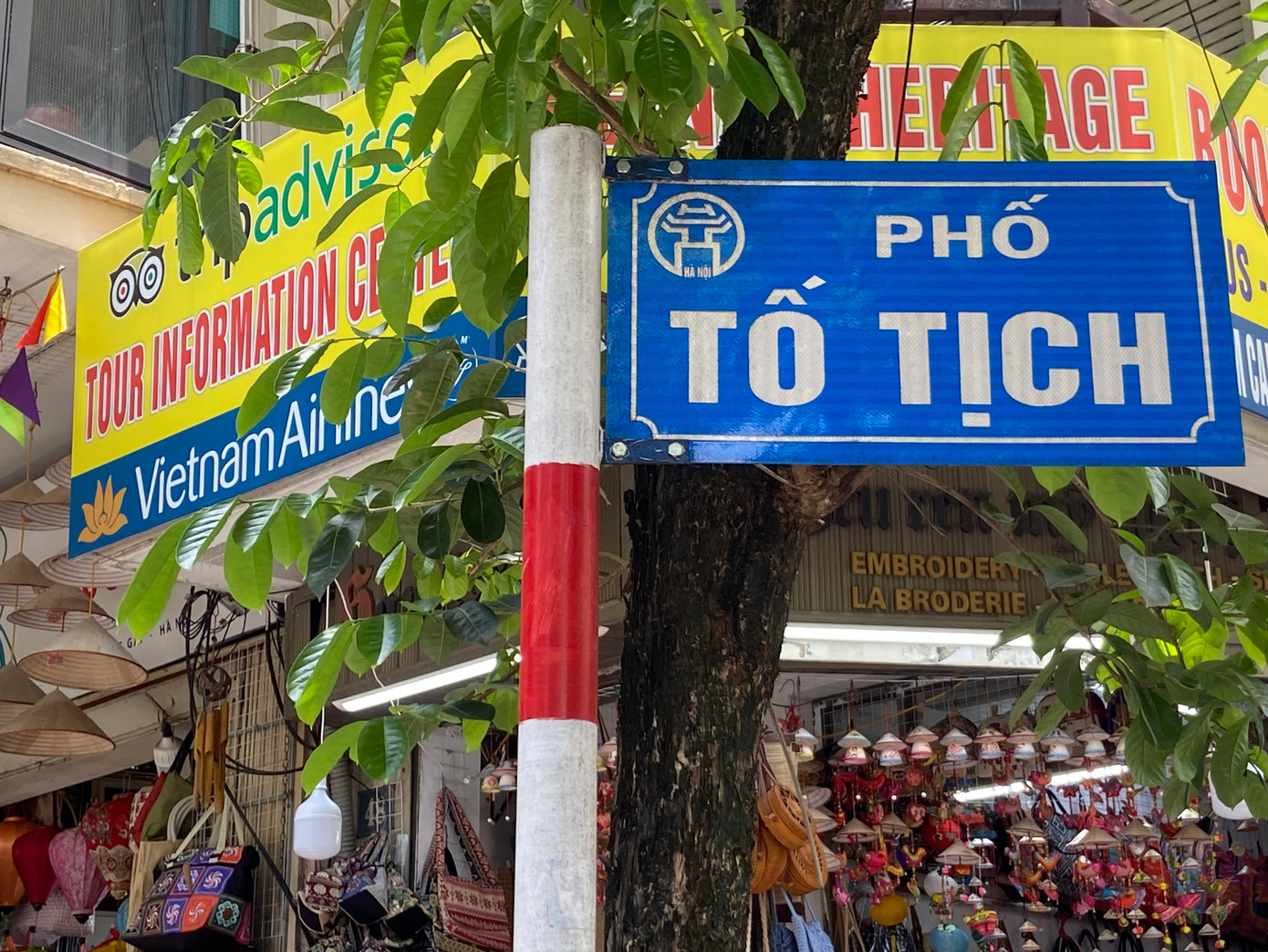 | Biển phố tên Tố Tịch nhưng những nhà trong phố lại ghi địa chỉ là Tô Tịch, có nhà lại ghi Tố Tịch. |