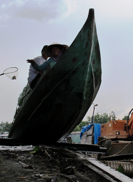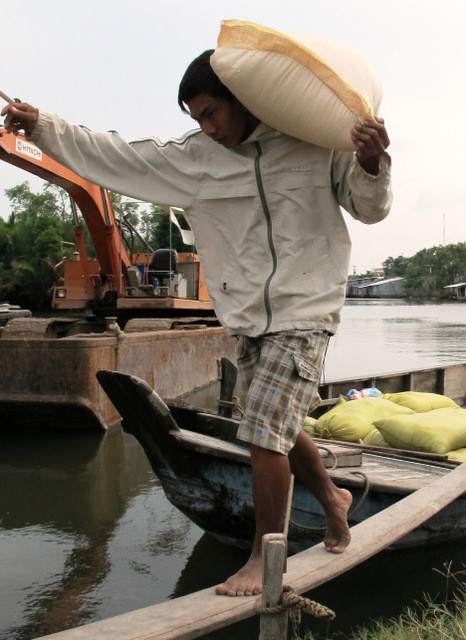 Xuồng ghe vùng ngọt hóa phải dùng cầu kéo qua đập ngăn mặn giữ ngọt ra bên ngoài. Tại vùng ngọt hóa, bà con trồng lúa kết hợp nuôi cá đồng, cả 2 sản phẩm cùng rớt giá. Ông Dương Văn Đáng, ở xã Khánh Bình Đông (Trần Văn Thời) cho biết: “Giá cá rô (loại 8-10 con/kg) khoảng 45.000 đồng/kg, cá lóc cân (loại 3 con/kg) giá 95.000 đồng/kg tại ao đìa. Khi gánh ra tới đường sông hoặc đường bộ có xe tải chở sẽ tăng lên 10.000 đồng/kg. Người nuôi cá đồng mất bình quân 10.000 đồng/kg cá thu hoạch được”.