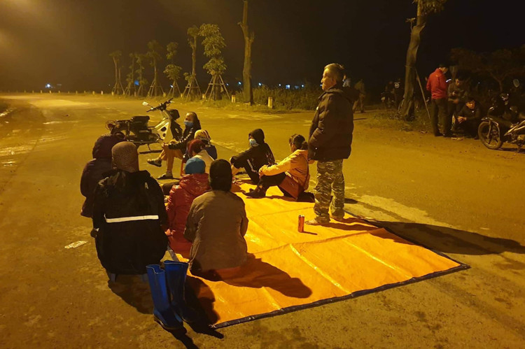 Việc chặn xe vào bãi rác bắt đầu từ chiều 23/12, tới đêm số người tăng gấp đôi, chủ yếu là đàn ông. Đến sáng nay, khi xe vào bãi giảm dần, đàn ông đi làm thì những phụ nữ lớn tuổi trong thôn Hai đến thay.