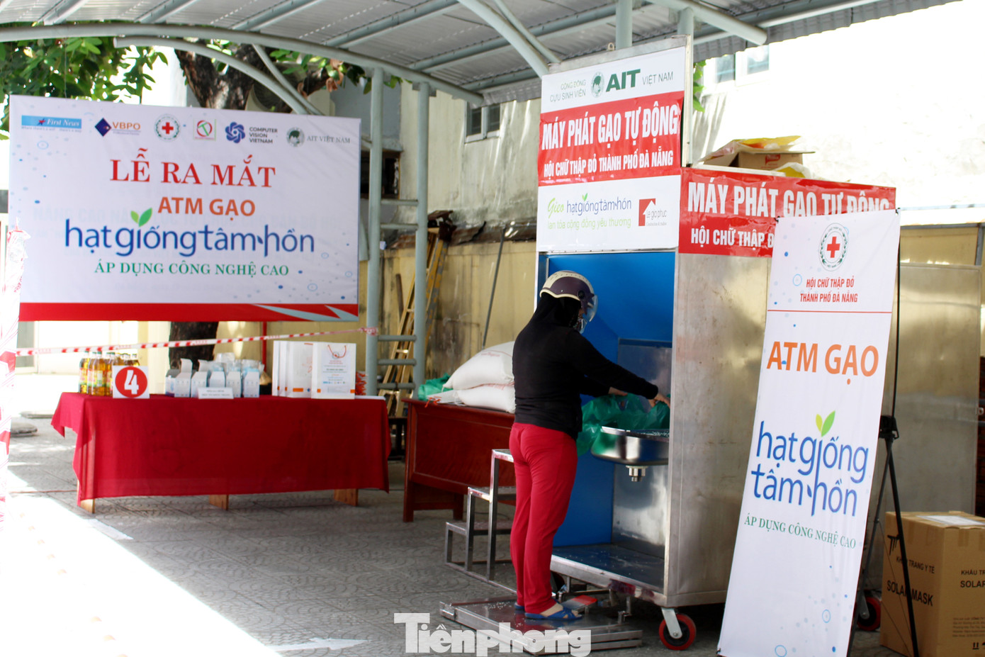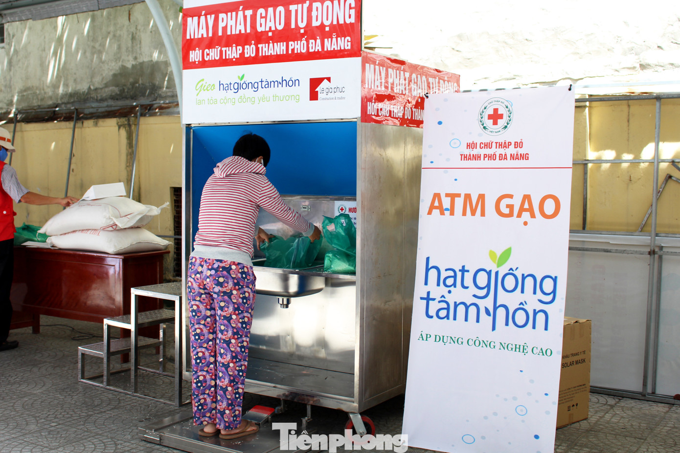 Chương trình ATM gạo - Hạt giống tâm hồn được Hội Chữ thập đỏ TP Đà Nẵng phối hợp với một số công ty về công nghệ triển khai nhằm hỗ trợ các hộ dân có hoàn cảnh khó khăn khi thực hiện giãn cách xã hội để phòng chống dịch bệnh. Ảnh: Giang Thanh