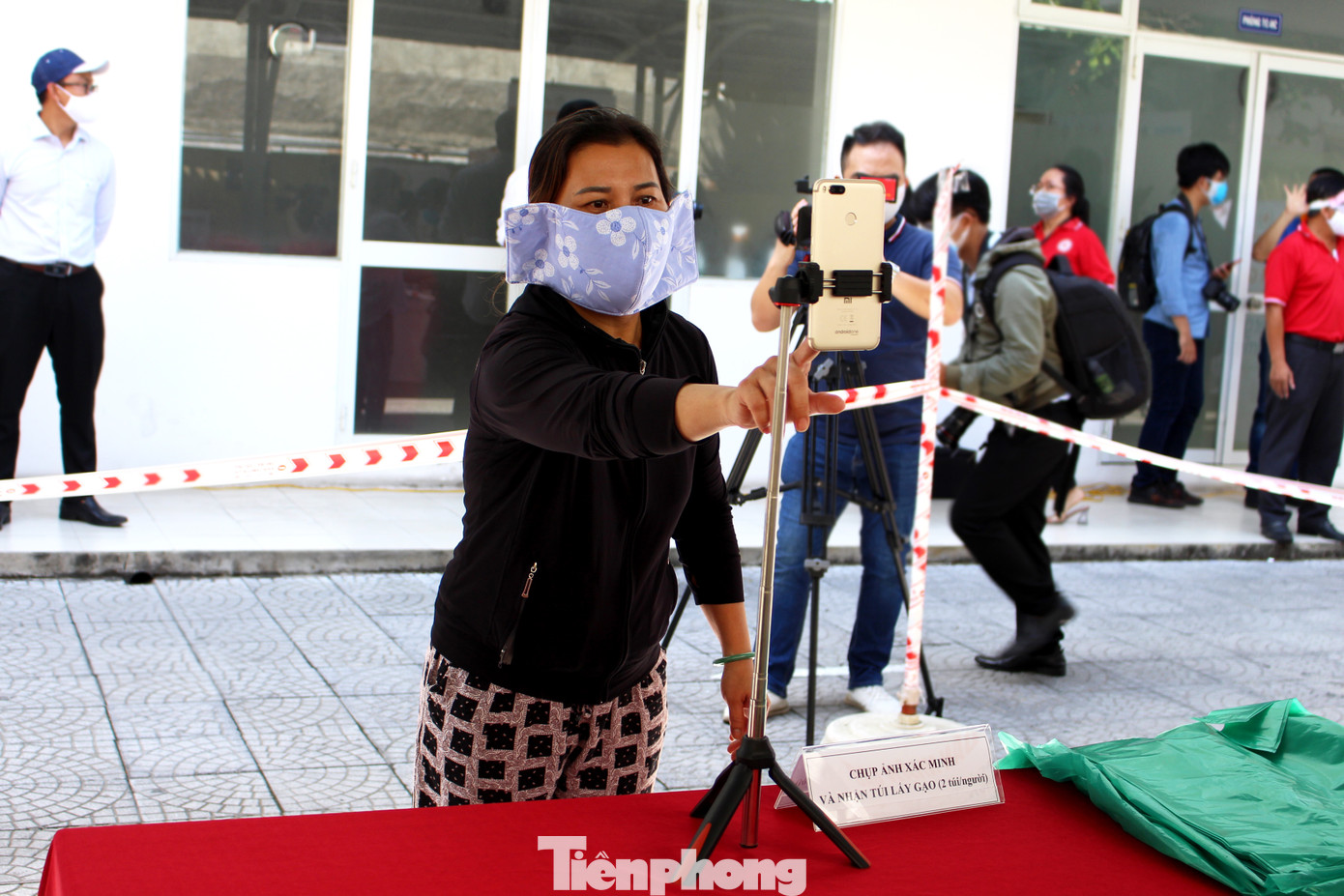Sau khi nhận diện khuôn mặt thành công, mỗi người dân sẽ được nhấn 2 lần nút lấy gạo và lấy được 12kg gạo. Số gạo này đã được Hội Chữ thập đỏ TP Đà Nẵng tính toán kỹ càng, phù hợp cho các hộ gia đình ăn trong vòng 1 tuần. Ảnh: Giang Thanh
