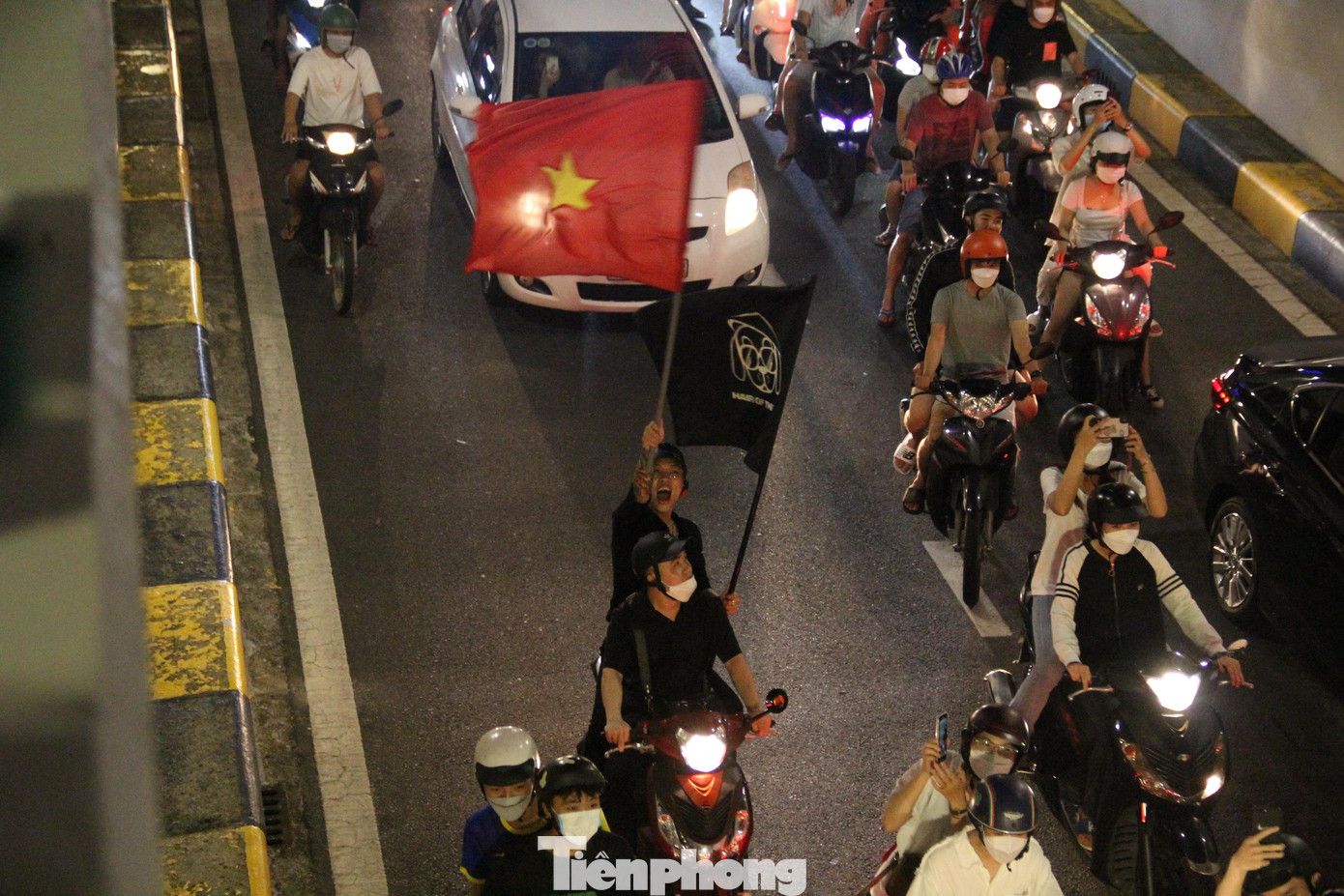 Cùng với cờ, kèn, dòng người diễu hành không ngừng hô vang "Việt Nam Vô địch", "Việt Nam chiến thắng" rộn rã khắp các nẻo đường.