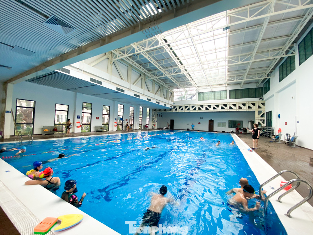 Bể bơi La Thành là bể bơi 4 mùa, nên người dân thoải mái bơi lội ngay cả khi thời tiết 'đỏng đảnh' như hôm nay.
