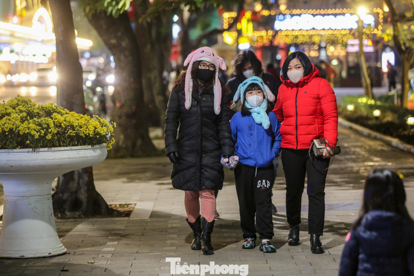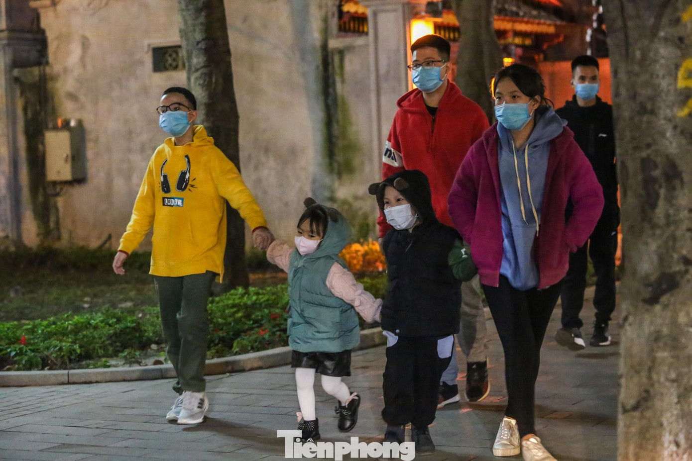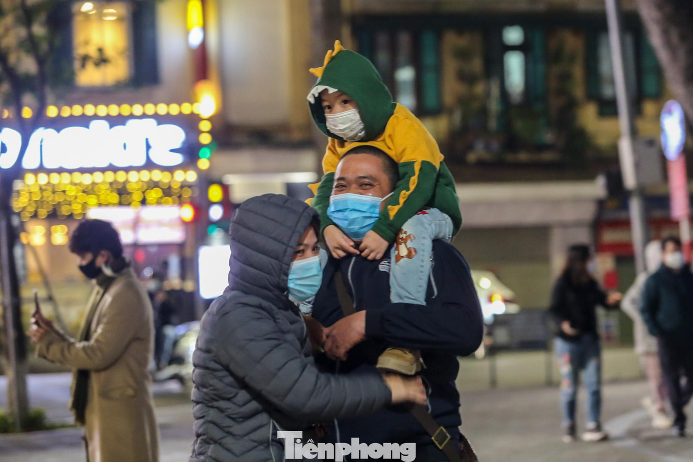 | Do ảnh hưởng của dịch COVID-19, thành phố không tổ chức bắn pháo hoa và các chương trình văn nghệ ngoài trời nhưng nhiều người dân Hà thành vẫn xuống phố đón giao thừa. |