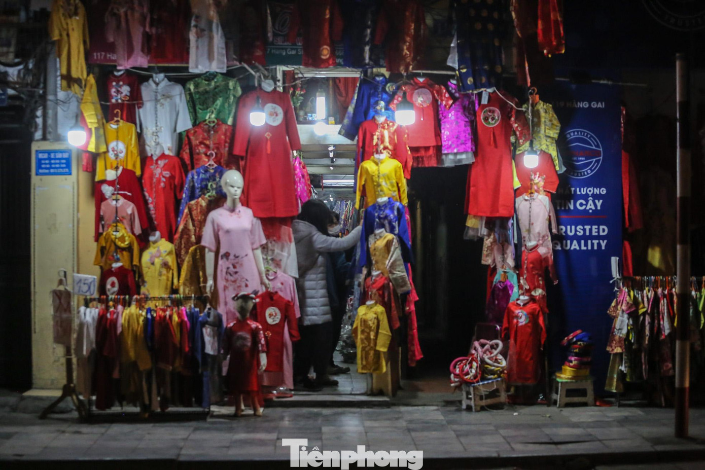 | Khu vực Hàng Mã, nhiều cửa hàng vẫn sáng đèn mặc dù chỉ còn vài tiếng nữa đến giao thừa. |