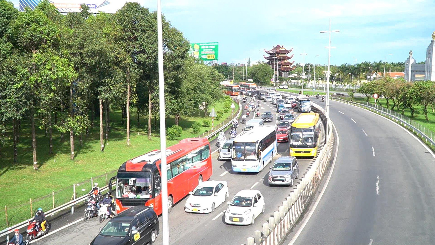 | Trên tuyến quốc lộ 1, đoạn qua địa bàn tỉnh Vĩnh Long, xe mỗi lúc một đông. |
