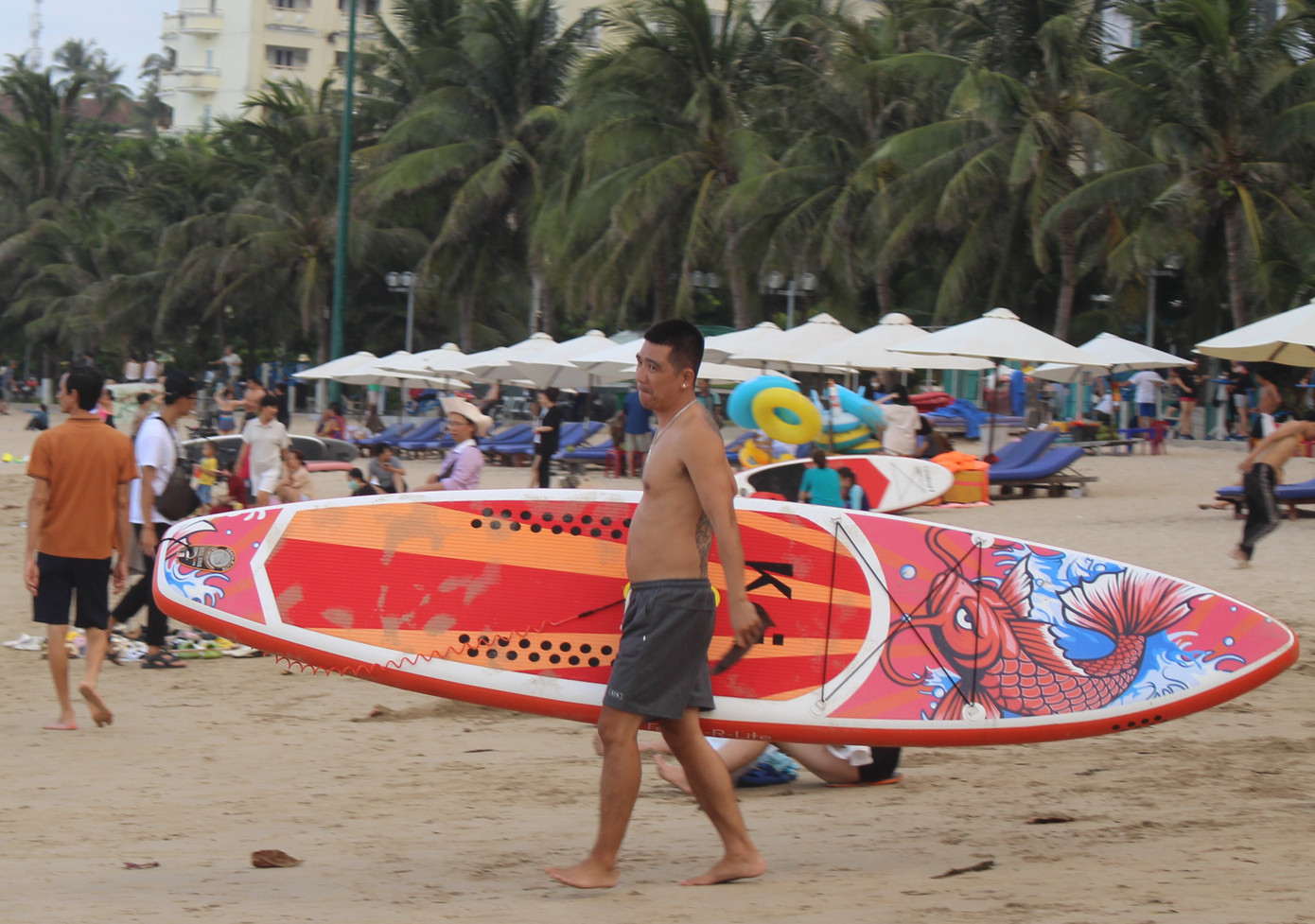 Theo quan sát của PV vào chiều 22/5, các bãi biển Nha Trang dọc theo đường Trần Phú và Phạm Văn Đồng ken đặc người vui chơi với các hoạt động như: tắm biển, tập thể dục, ăn uống, hóng mát…