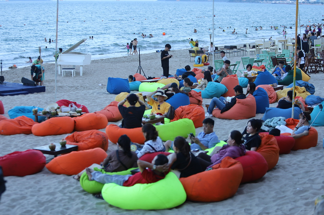 | Du khách nước ngoài tận hưởng bầu không khí biển Nha Trang mát mẻ |