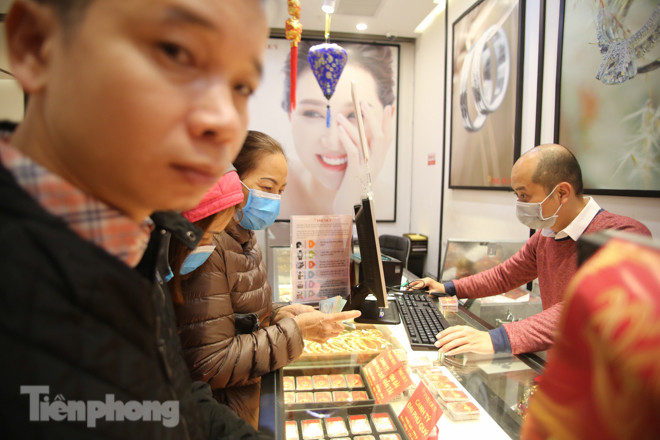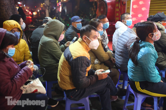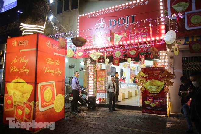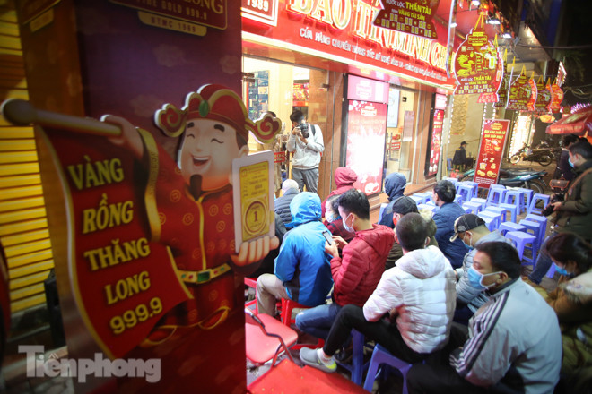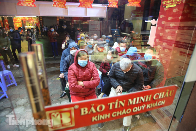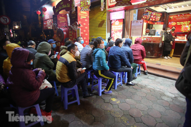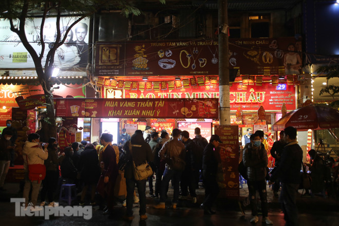 Ngay từ trong đêm, đã rất nhiều người đứng xếp hàng chờ mua vầng ngày vía Thần tài (10 tháng Giêng) tại "phố vàng" Trân Nhân Tông, Hà Nội.