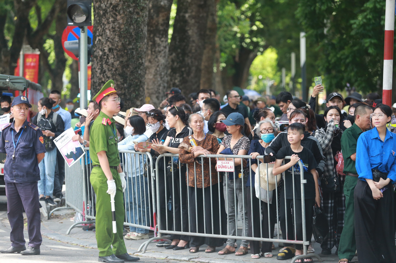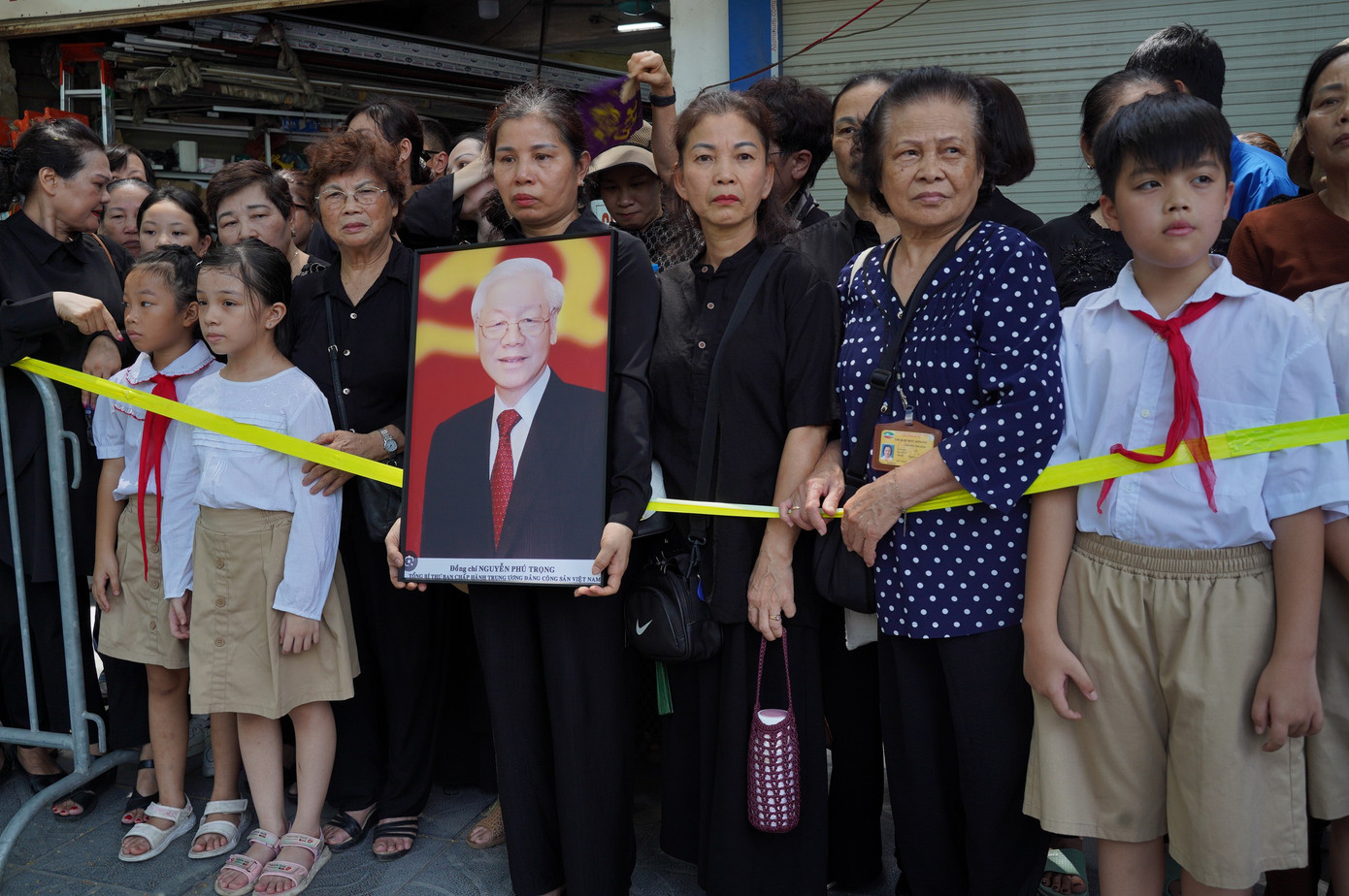 | Người dân tập trung ở khu vực phố Tràng Tiền chờ đón linh cữu Tổng Bí thư Nguyễn Phú Trọng. |