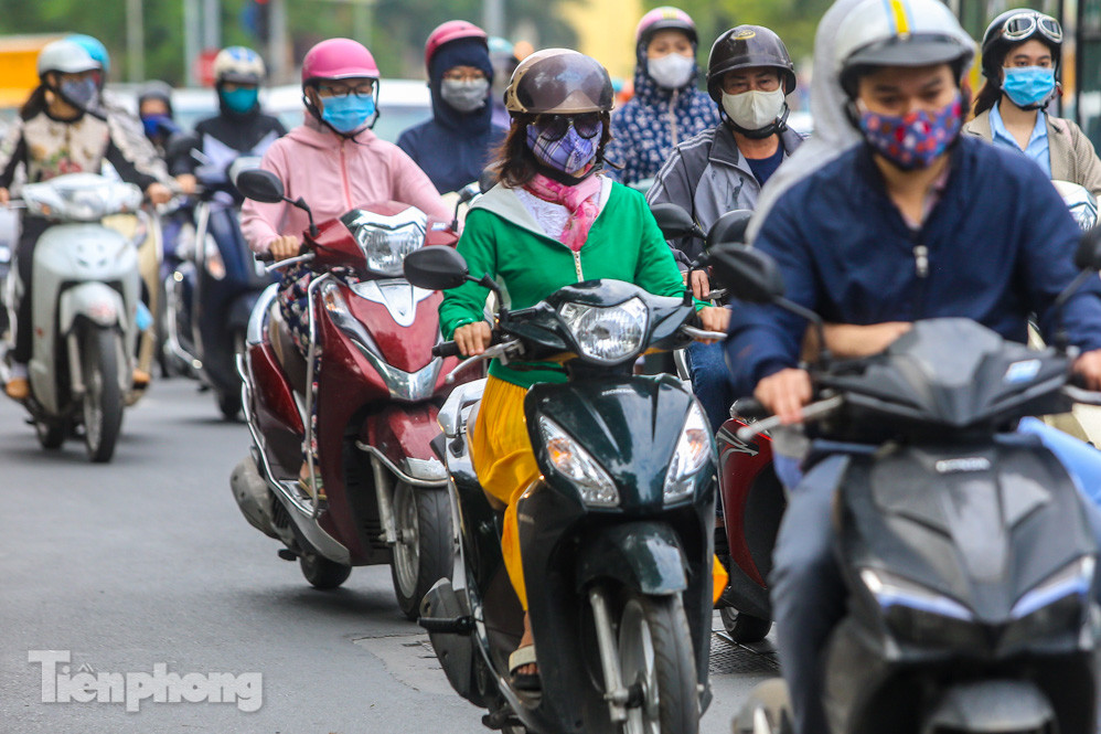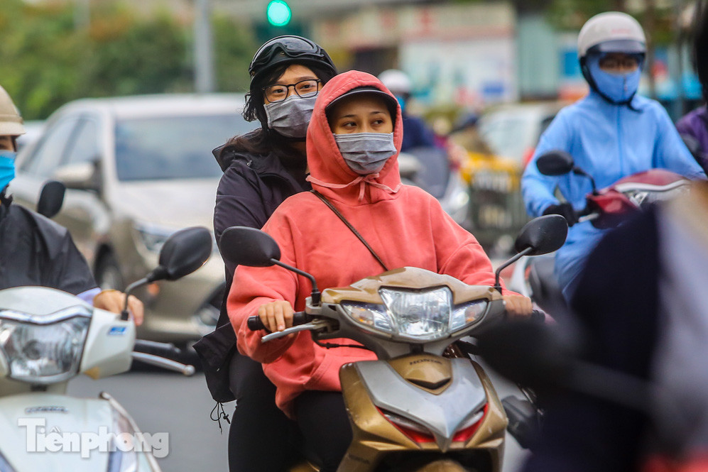 Thay vì áo cộc, áo mỏng, người dân Thủ đô ra đường trong những ngày này với chiếc áo khoác, áo phao khi cái lạnh được cảm nhận rõ rệt.