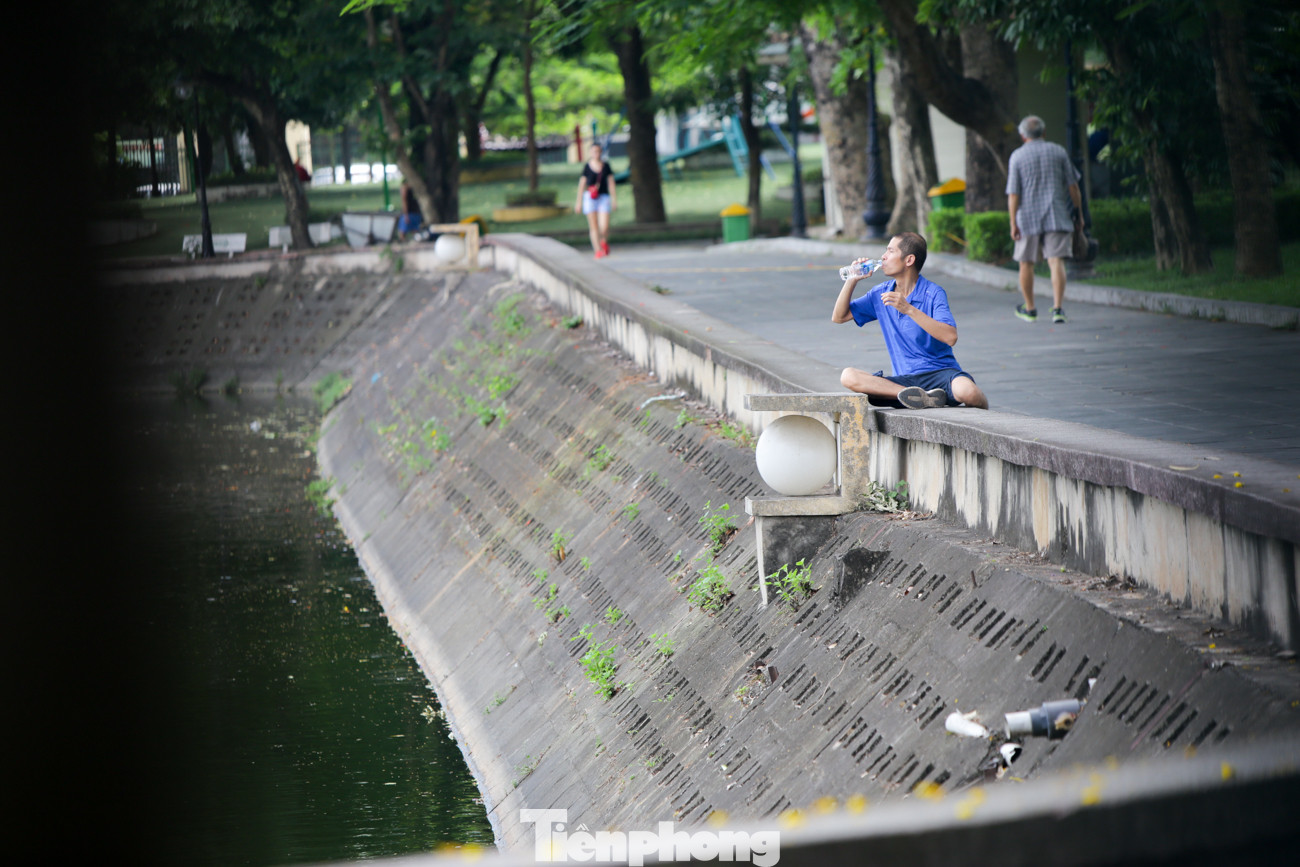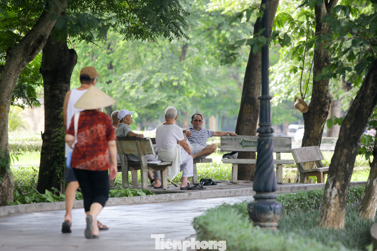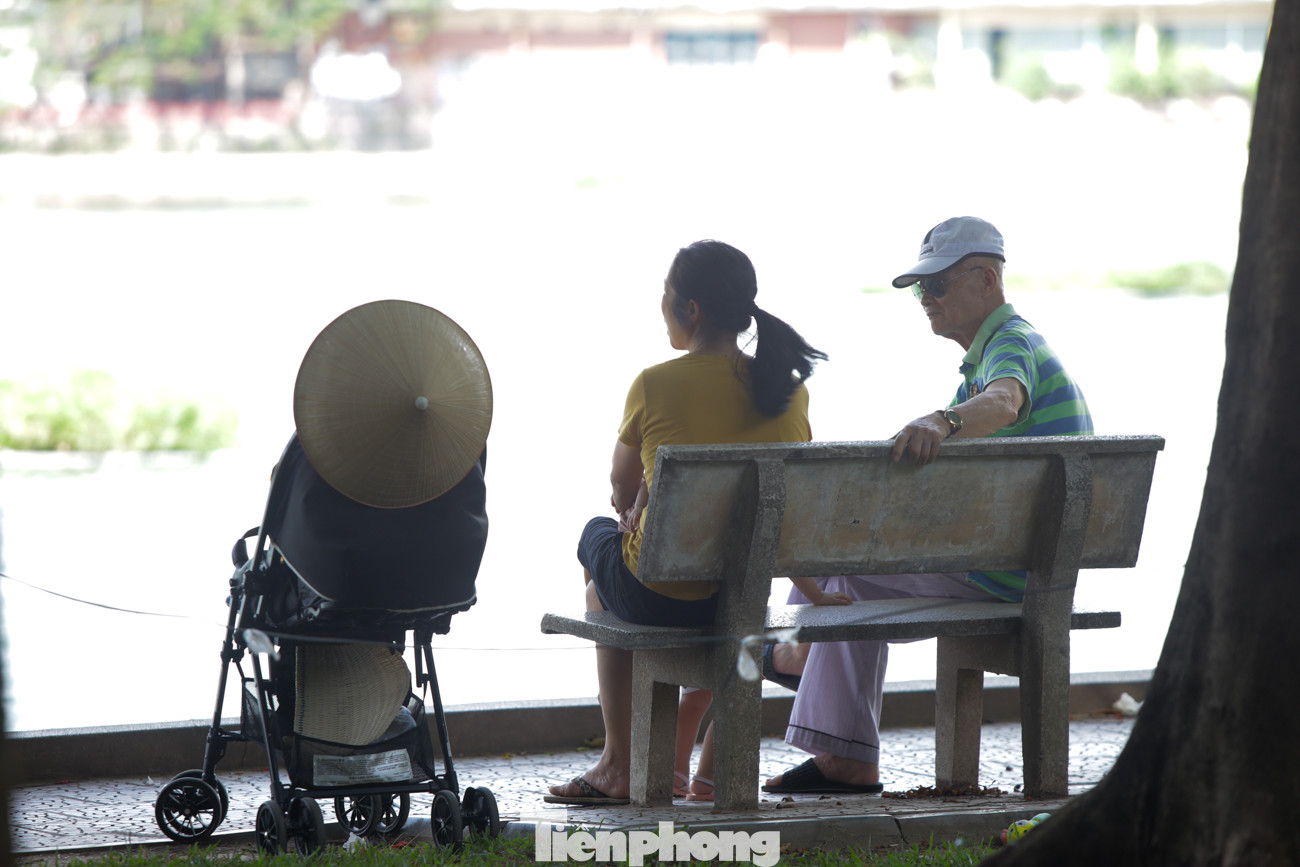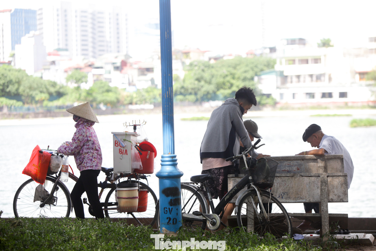 Hồ Giảng Võ là điểm người dân dừng chân nghỉ ngơi, tránh nắng khá đông.