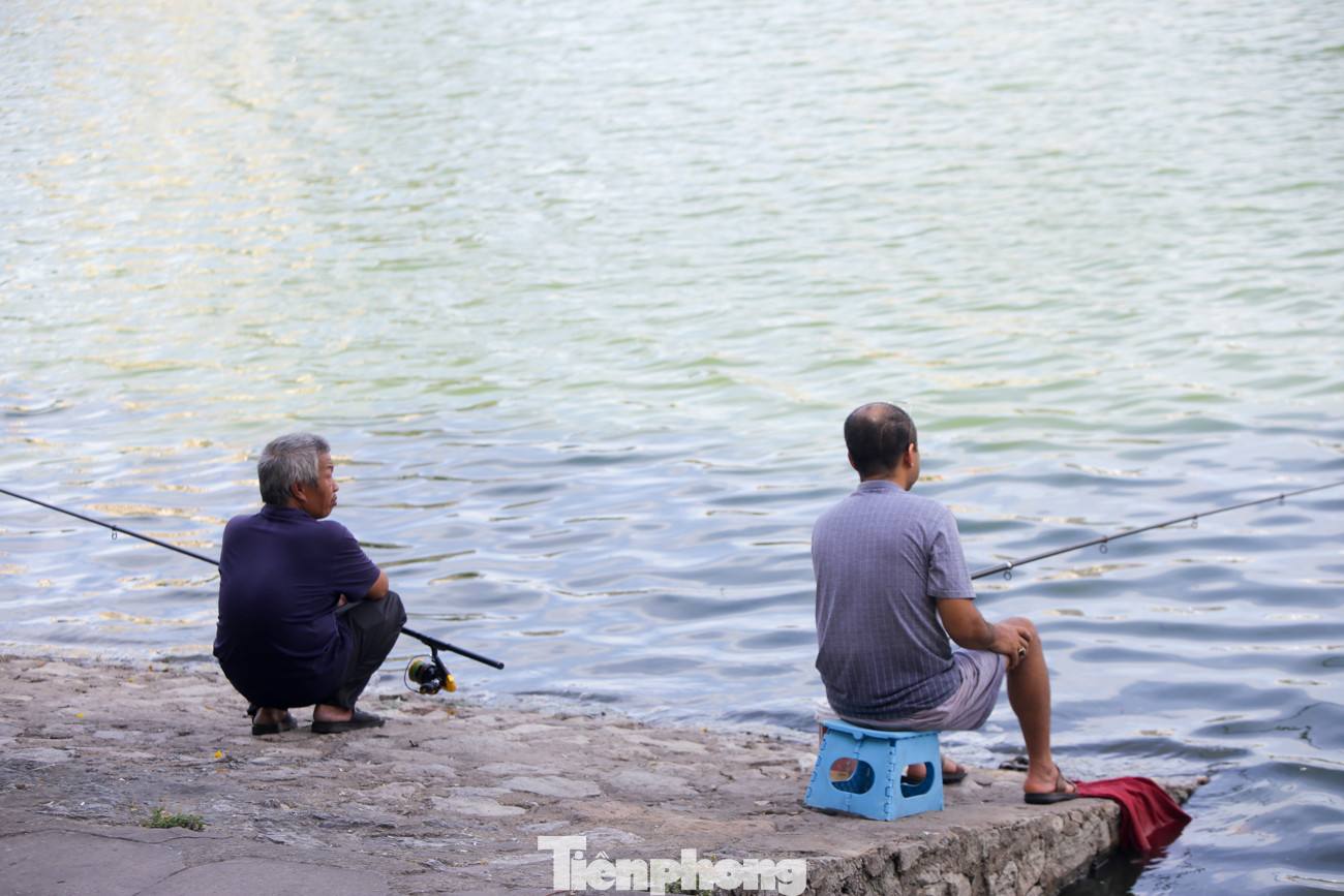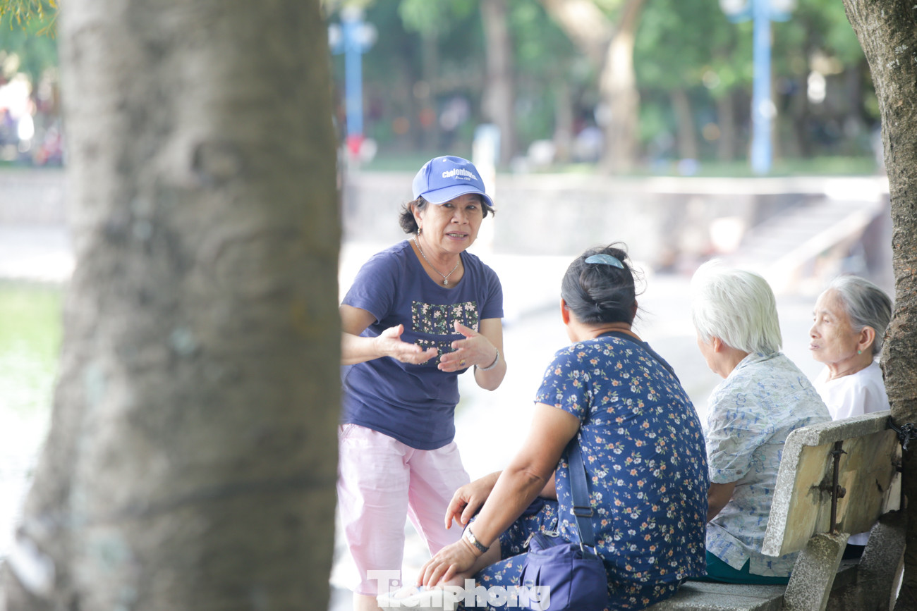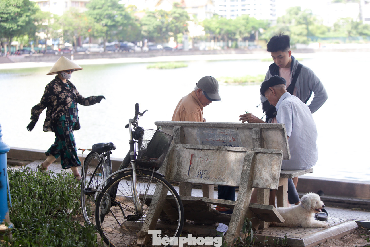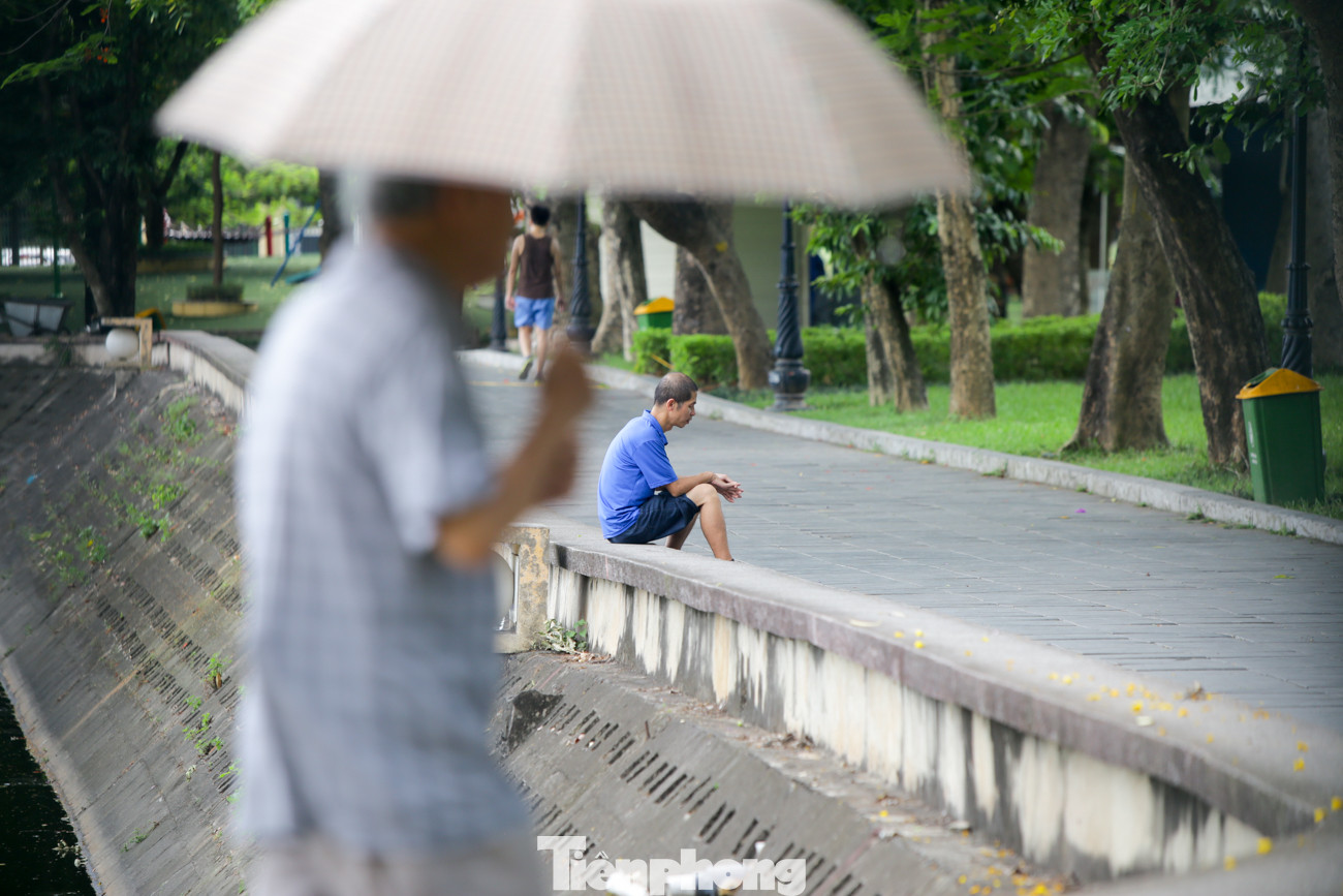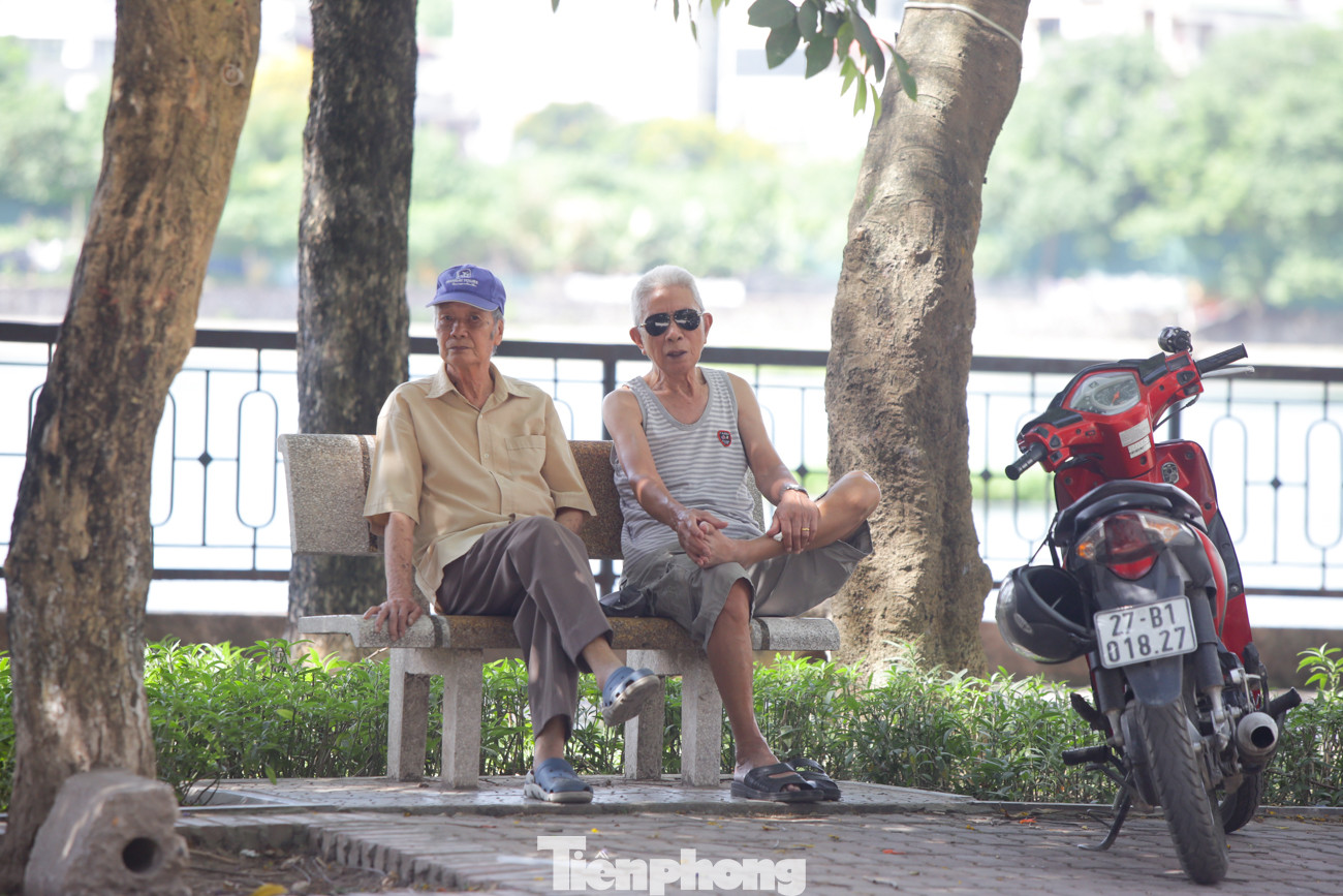 Hồ Giảng Võ là điểm người dân dừng chân nghỉ ngơi, tránh nắng khá đông.