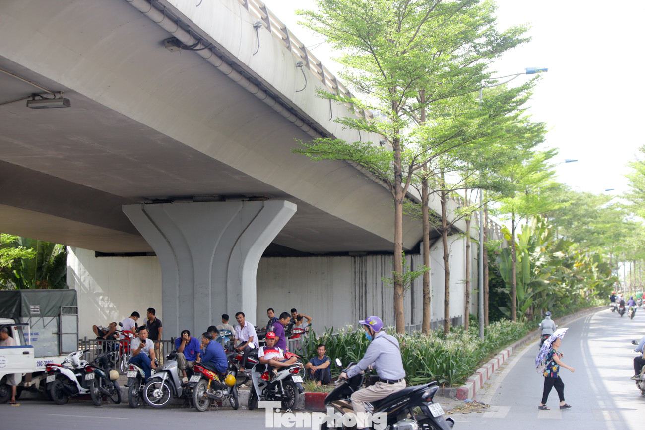 Gầm cầu cũng là điểm tránh nắng lý tưởng của người dân khi phải di chuyển giữa trời nắng gắt như thế này.