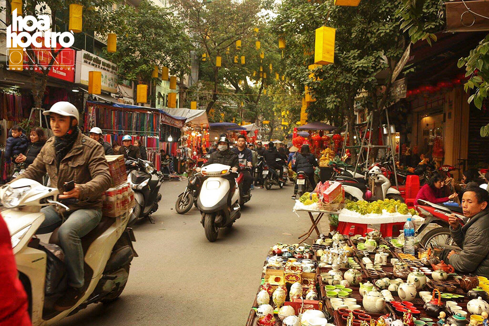 Những tuyến phố cổ ngày cuối năm tấp nập người qua lại, ai cũng hối hả với công việc riêng để cố gắng lo toan cho cuộc sống và chuẩn bị cho cái tết đang cận kề. Nhiều cửa hàng bày hàng hóa tràn ra lề đường khiến các con phố trở nên huyên náo.
